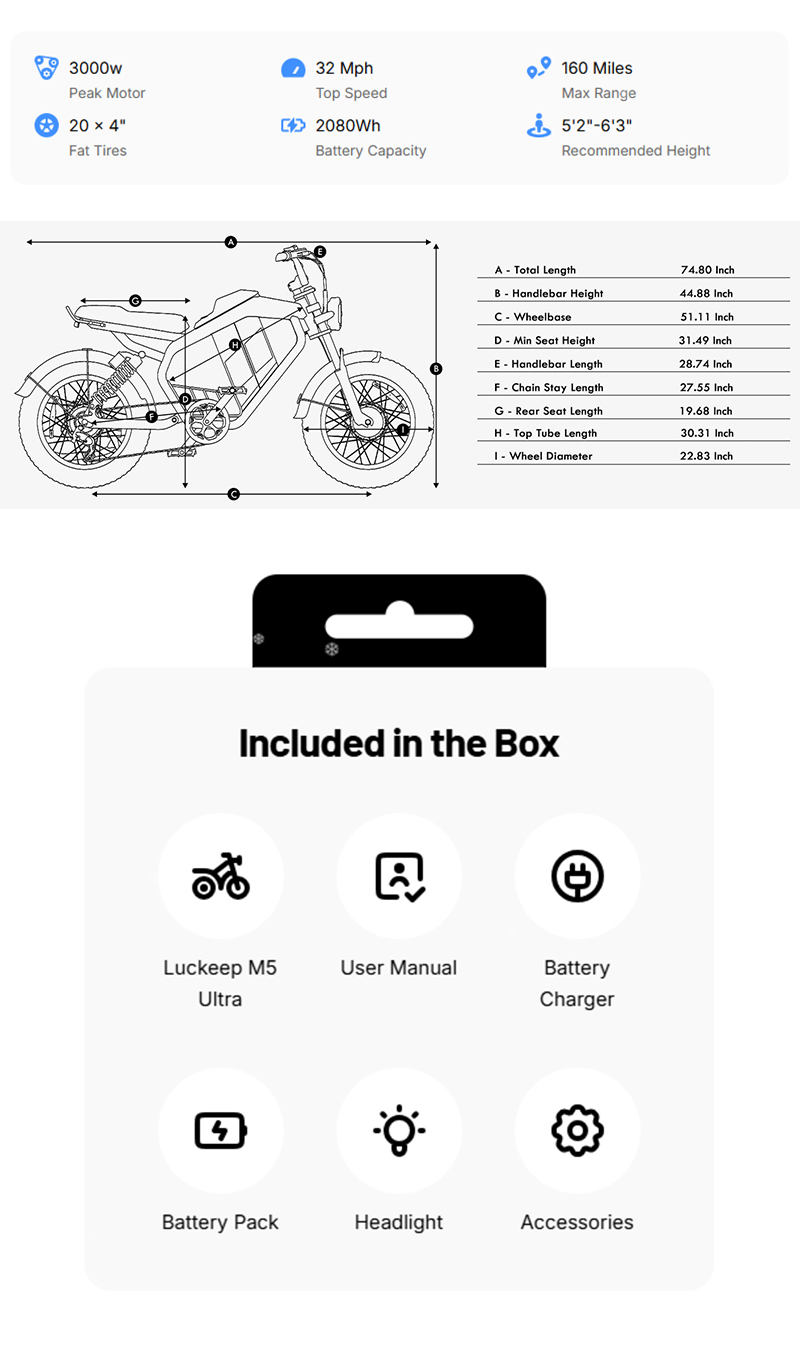 The M5 Ultra is engineered for performance and adventure, featuring front and rear dual 1000W high-speed brushless motors. With up to 240N·m of torque, it delivers exceptional acceleration and climbing capability, making steep hills and rough terrain effortless to conquer. Reaching a top speed of 32 MPH, the M5 Ultra lets you experience the thrill of true high-performance off-road riding.